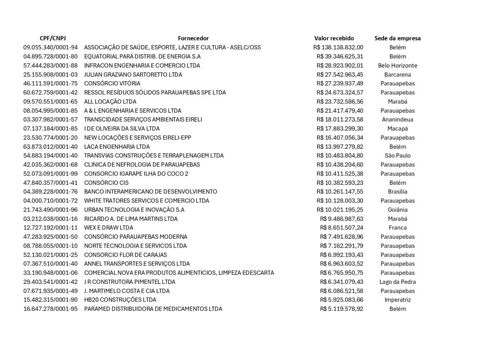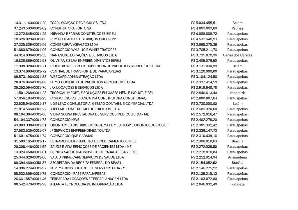 Em meio à farra das exportações de recursos públicos no sofrível governo de Aurélio Goiano, empresas com sede em Parauapebas receberam juntas da gestão do autointitulado “Doido” cerca de R$ 250,56 milhões, conforme apurou o portal Notícias de Parauapebas, com base em dados lançados pela malfadada “equipe técnica” do prefeito no Portal da Transparência.